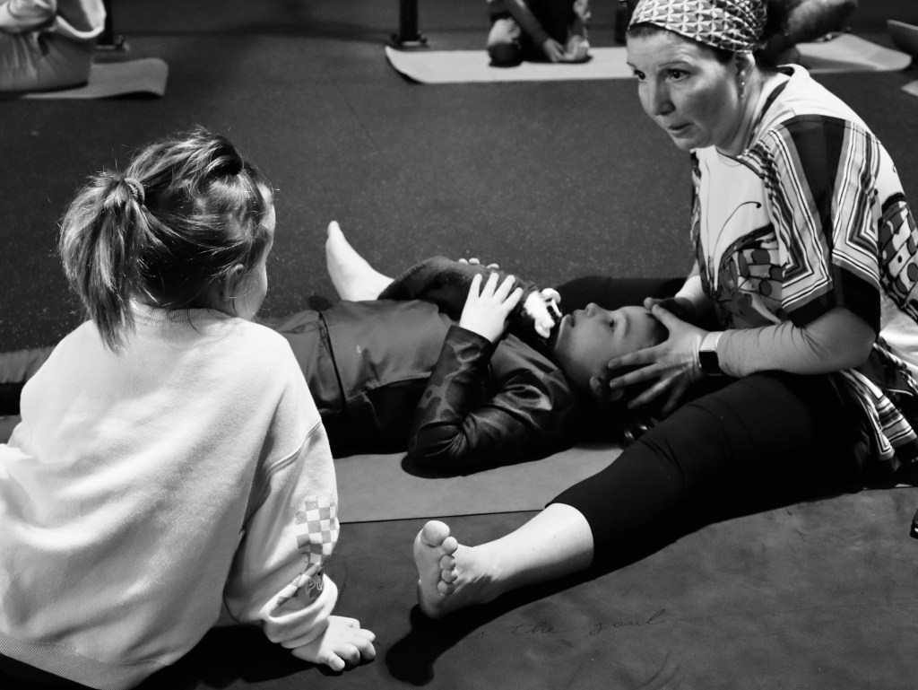 J’intègre d’abord le yoga à ma séance. Nous faisons des étirements afin d’échauffer le corps.