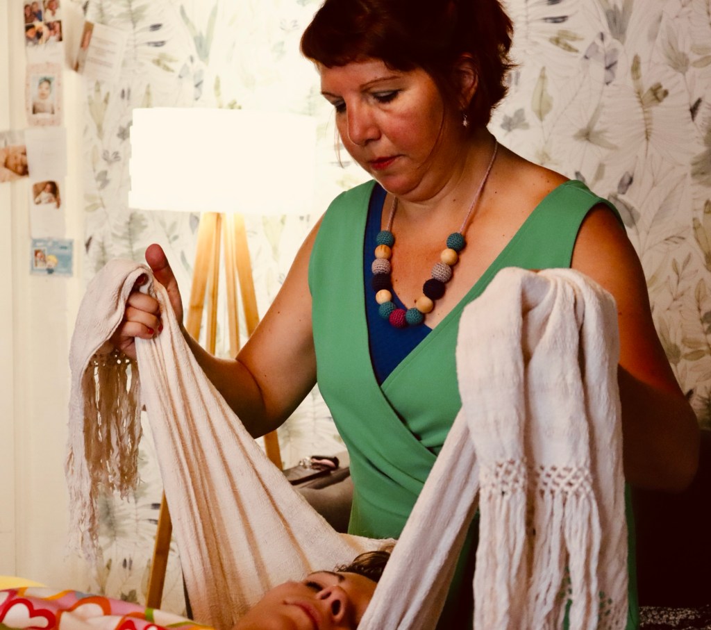 🌱Ensuite, je propose un bercement de tout votre corps à l’aide de plusieurs écharpes. Enfin, je ressers le bassin pendant plusieurs minutes.