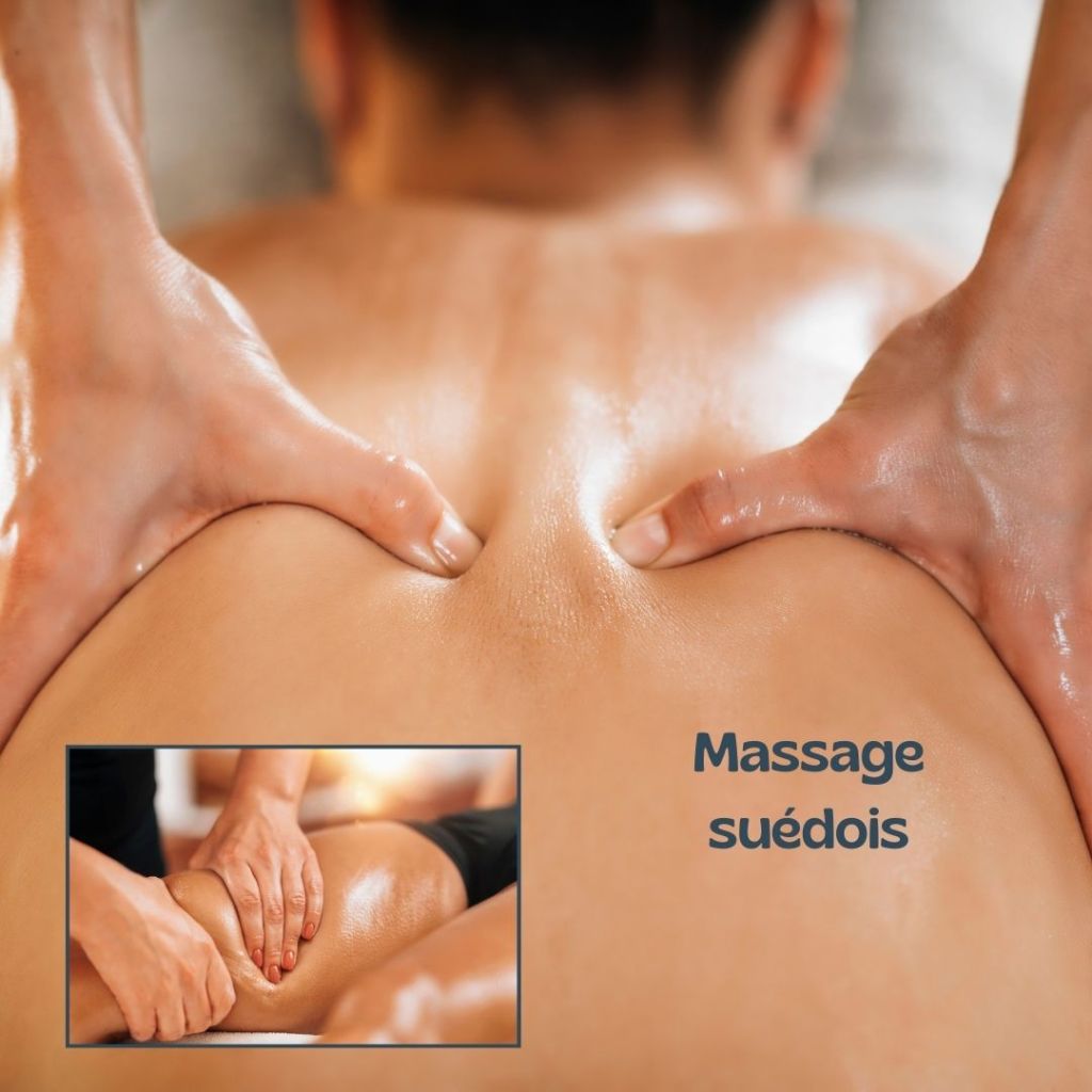 Le massage suédois est un enchaînement de manœuvres appliquées sur la masse musculaire ou les articulations et servant à remettre en état des muscles fatigués. Il vise à maximiser la capacité d’action du corps, améliore la circulation sanguine car il favorise le retour du sang vers le cœur et améliore la circulation lymphatique, la nutrition et l’élimination cellulaires. Le massage suédois harmonise les tensions et stimule les fonctions autorégulatrices.